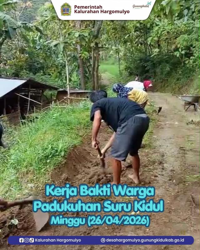 Hargomulyo—Warga Padukuhan Suru Kidul RT 004 melaksanakan giat kerja bakti di lingkungan jalan Pemukiman RT 004, pada Minggu (26/04/2026) pagi.