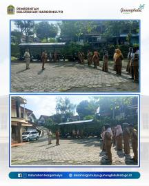 Pelaksanaan Apel dipimpin langsung oleh Carik Hargomulyo, Nanang Setyawan, dan diikuti oleh seluruh Pamong Kalurahan beserta Staf Pamong.
