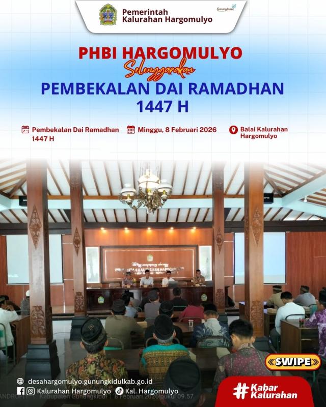 Pemerintah Kalurahan Hargomulyo berharap dengan kegiatan Pembekalan Dai Ramadhan ini, kegiatan ibadah bulan Ramadhan 1447 H di mushola dan masjid se Kalurahan Hargomulyo dapat berjalan dengan lancar.