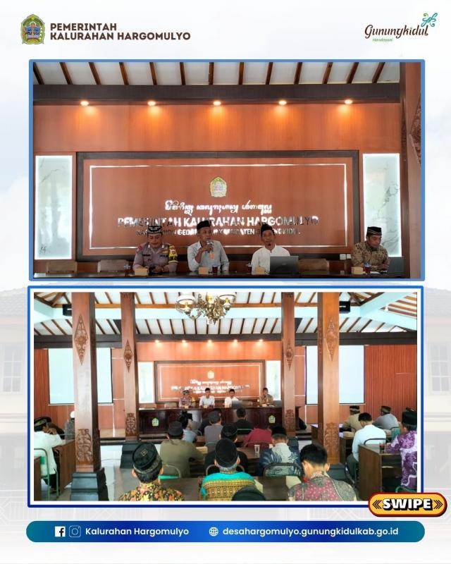 Kegiatan Pembekalan Dai Ramadhan 1447 H dihadiri oleh Lurah Hargomulyo, Bhabinkamtibmas Hargomulyo, Pengurus PHBI Hargomulyo dan Dai se Kalurahan Hargomulyo.