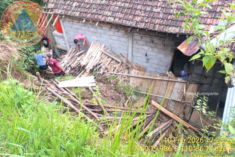 Lurah Hargomulyo, Sumaryanta yang meninjau langsung lokasi tanah longsor tersebut, Selasa (10/02/2026) malam, memastikan dampak dari tanah longsor tidak terdapat korban jiwa dan memastikan segera tertanggulangi.