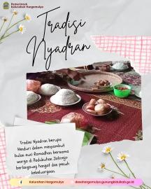 Tradisi nyadran yang sudah menjadi tradisi turun temurun ini menjadi salah satu tradisi yang dilakukan dalam menyambut bulan suci ramadhan, sekaligus ungkapan rasa syukur kepada Allah SWT atas limpahan rahmat, serta mempererat rasa kekeluargaan dan gotong royong bersama warga.