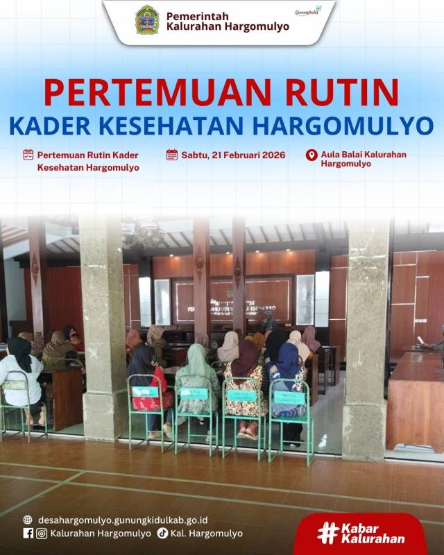 Hargomulyo - Pertemuan Rutin Kader Kesehatan se Kalurahan Hargomulyo yang bertempat di Balai Kalurahan Hargomulyo pada hari Sabtu (21/02/2026).