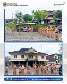 Hargomulyo -- Pelaksanaan Apel Rutin Pamong Kalurahan Hargomulyo bertempat di halaman kantor Kalurahan Hargomulyo, pada hari Senin (23/02/2026) yang diikuti oleh seluruh pamong Kalurahan beserta staf.