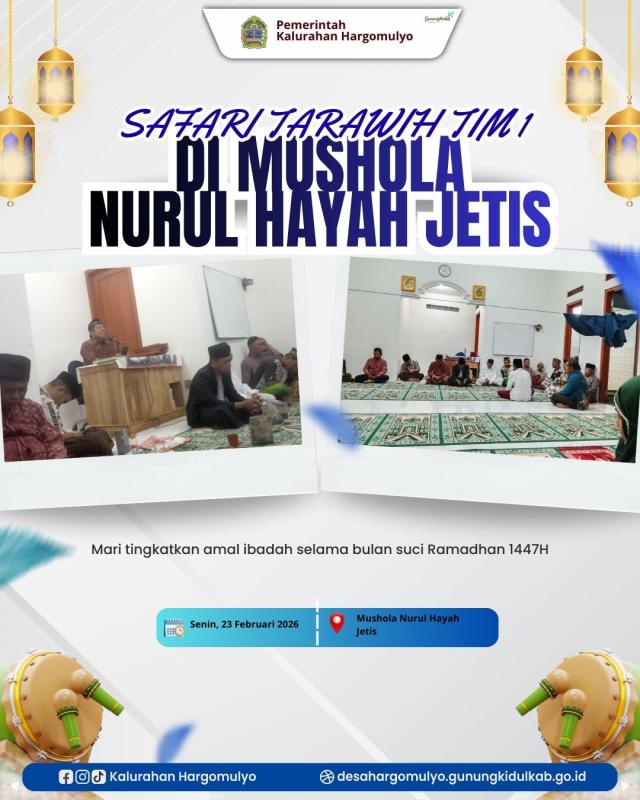 Hargomulyo – Tim Safari Tarawih Kelompok 1 melaksanakan safari Tarawih putaran pertama di Mushola Nurul Hayah Padukuhan Jetis pada Senin malam (23/02/2026).