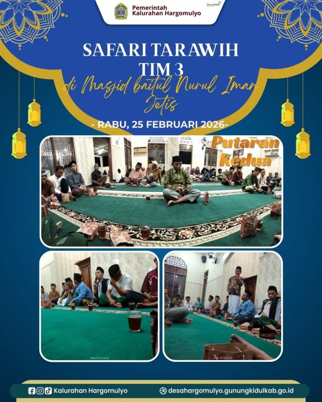 Hargomulyo – Tim Safari Tarawih Kelompok 3 melaksanakan safari Tarawih putaran kedua di Masjid Baitul Nurul Iman Padukuhan Jetis pada Rabu malam (25/02/2026).