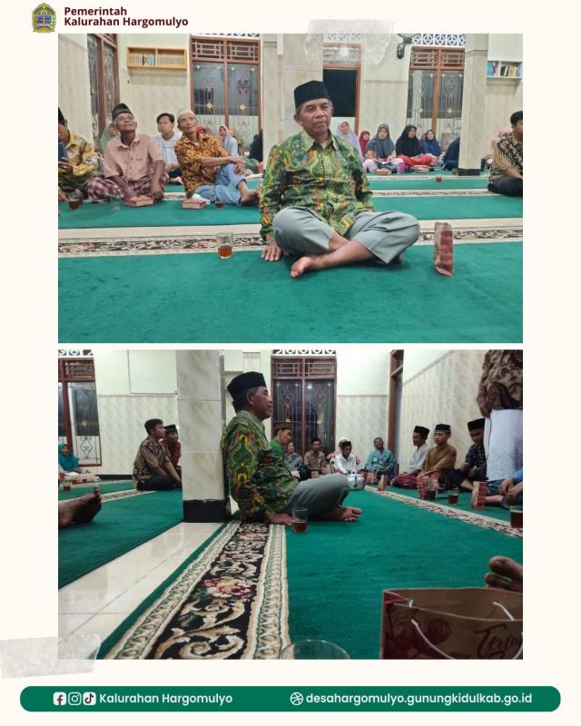 Pada kesempatan tersebut, sambutan dari Pemerintah Kalurahan Hargomulyo disampaikan oleh Haryanto selaku Kamituwa Hargomulyo. Ia menyampaikan ucapan terimakasih kepada Takmir dan jamaah tarawih Masjid Baitul Nurul Iman yang telah menyambut hangat tim safari. Selain itu, ia juga menyampaikan terkait dengan kewajiban pembayaran pajak tanah sesuai dengan SPPT yang sudah dibagikan oleh Dukuh masing-masing dan himbauan untuk membangkitkan semangat gotong royong dalam kegiatan pembangunan Kalurahan mengingat terjadi penurunan anggaran dana desa tahun 2026.