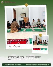 Agenda Safari Tarawih dihadiri oleh Tim Safari Kelompok 1, takmir masjid Al Muhajirin beserta warga padukuhan setempat.