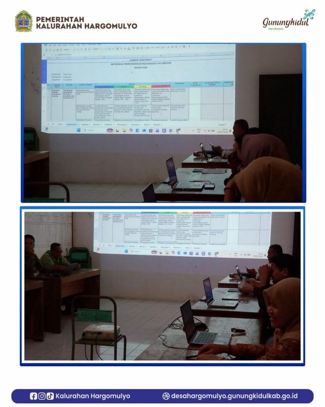 Lurah Hargomulyo, Carik, Kaur dan Kasi beserta staf pamong Kalurahan turut hadir mengikuti agenda Assesmen RPMKal.