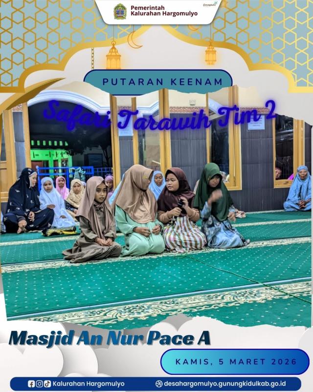 Hargomulyo – Tim Safari Tarawih Kelompok 2 melaksanakan safari Tarawih putaran keenam di Masjid An Nur Pace A pada Kamis (05/03/2026) malam.
