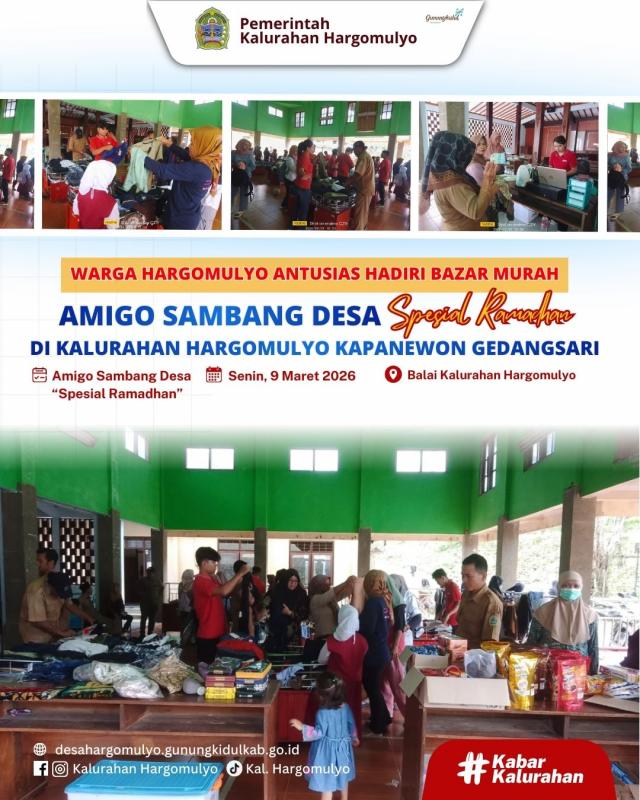 Hargomulyo- Amigo Sambang Desa-Spesial Ramadhan yang menghadirkan Bazar Murah berupa sembako, fashion lebaran dan aneka snack berlangsung di Balai Kalurahan Hargomulyo, pada Senin (9/03/2026) pagi.