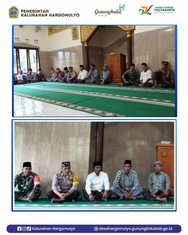 Rakor PHBI dihadiri oleh Lurah Hargomulyo, Bhabinkamtibmas dan Babinsa Hargomulyo, pengurus PHBI Hargomulyo, beserta Takmir Masjid se Kalurahan Hargomulyo.
