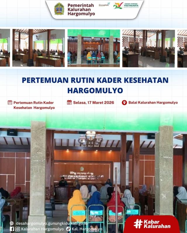 Hargomulyo - Pertemuan Rutin Kader Kesehatan se Kalurahan Hargomulyo, bertempat di Balai Kalurahan Hargomulyo pada hari Selasa (17/03/2026).