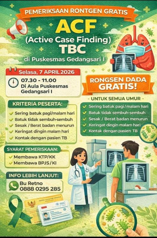 Puskesmas Gedangsari I mengadakan Pemeriksaan Rontgen Dada Gratis pada hari Selasa, 7 April 2026