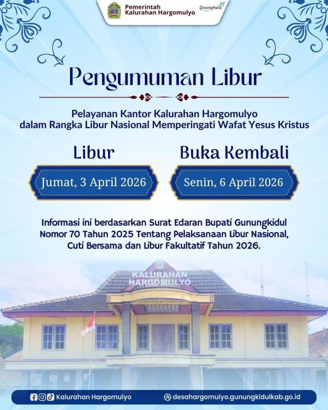 Pengumuman Pelayanan Kantor Kalurahan Hargomulyo dalam rangka Libur memperingati Wafat Yesus Kristus